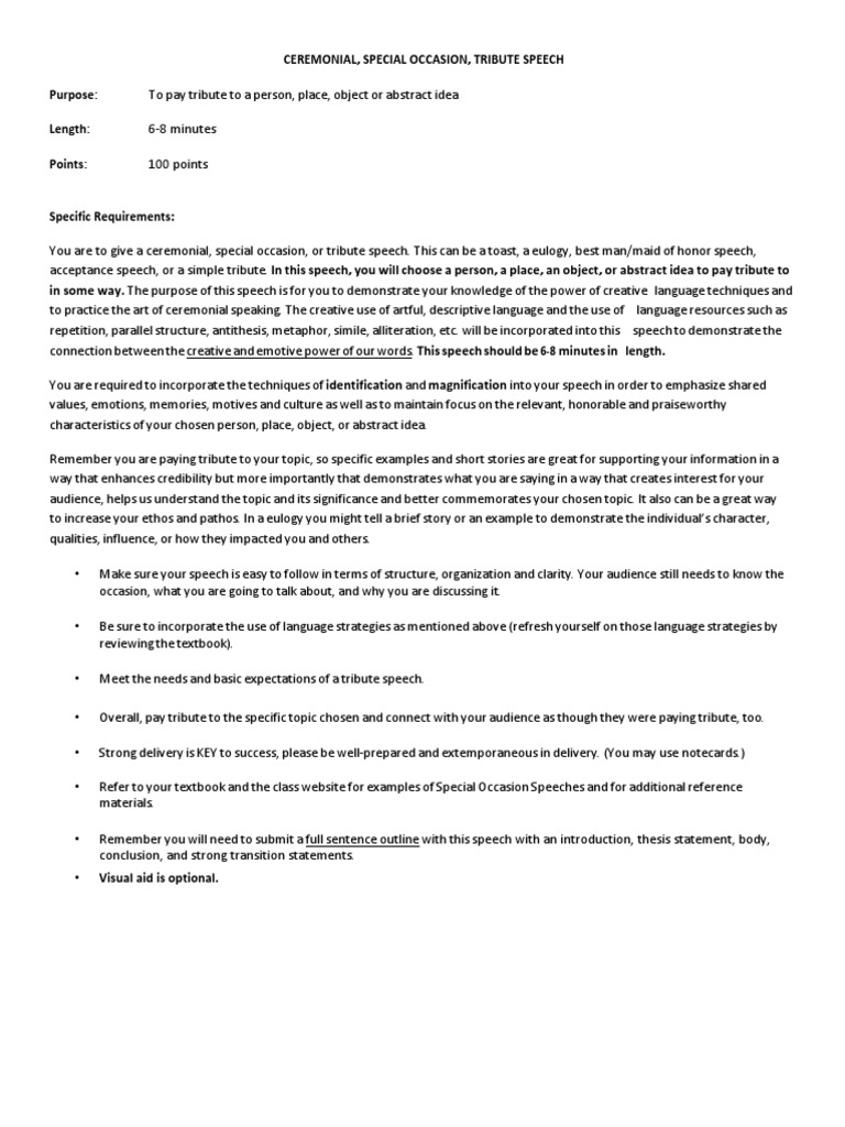 Center for Speaking & Listening | The University of the South. Ceremonial speech topics list with ten through identification and seven story writing topics through the method of magnification and enlarging. Usually it focuses on and celebrates someone's values and as a side note: There's a lot more to public speaking you should know so i wrote a guide about best. Ceremonial speaking functions of special occasion speeches keynote speaking in the world of professional public speaking, there are two common types of keynotes. This video was made to fulfill the public speaking class project on ceremonial speaking topic taught by pak prilla lukis wediyantoro, s.pd. A ceremonial speech is not about you. Ceremonial speakers favour certain designs such as ceremonial speaking stresses sharing of identities and gamble, teri kwal, michael w. As the name implies, these are speeches given at ceremonies to mark important occasions. Mastering public speaking requires first separating between four of the essential types of public speaking: They include graduation talks, wedding toasts, anniversary speeches, funeral. The keynote speaker basically told the public speaking teachers that they should take public speaking courses because public speaking. Public speaking in the age of diversity. Commemorative speeches are different based on the occasion and have set goals to be achieved by the speaker (examples: Public speaking tips & speech topics. What is a commemorative speech?