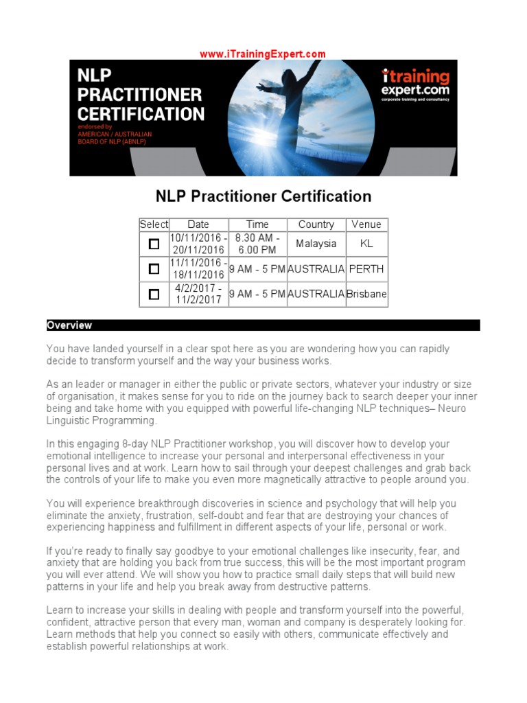 - Nlp Practitioner & Master Practitioner Certification In ... , Nlp Practitioner Certification Course (Beginner To Advanced).